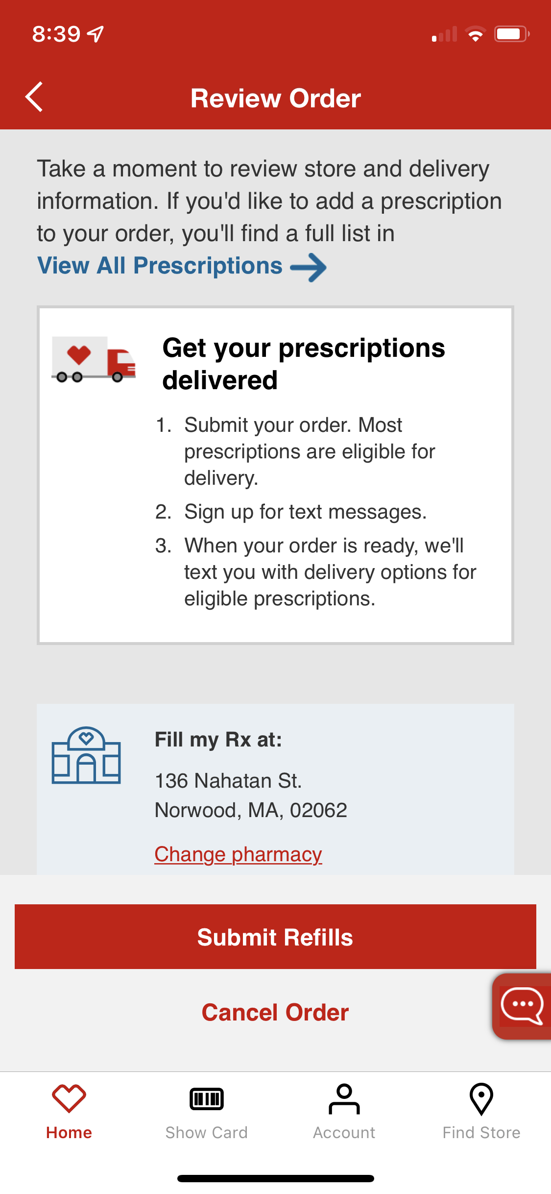 We had to work within the existing pharmacy order framework: Unlike Caremark or Specialty, which are fulfilled through the mail, the retail pharmacy orders needed to be filled at their assigned local CVS stores. I needed to write simple copy to help customers follow the necessary steps to get their medications delivered to their homes.